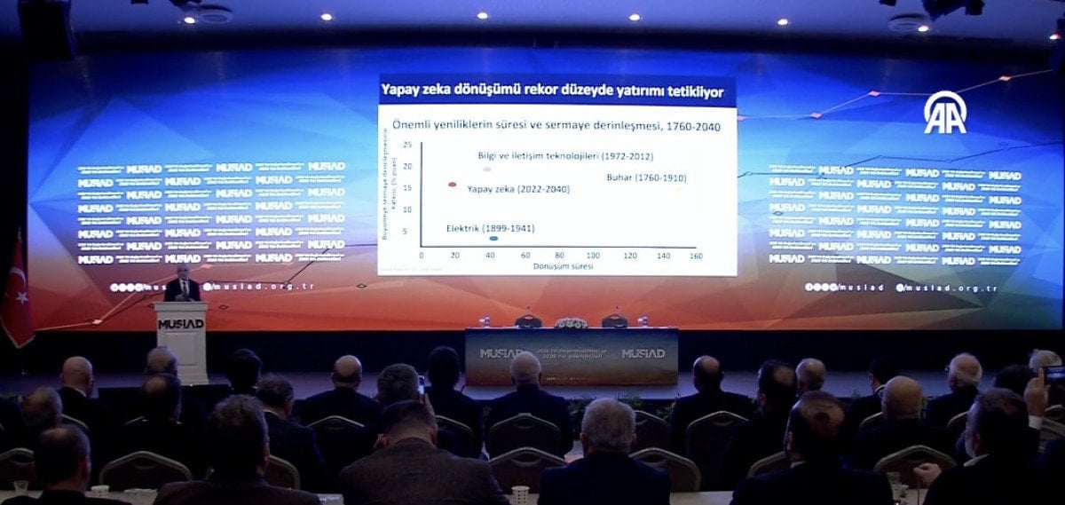 Yapay zeka çok daha hızlı ve inanılmaz yatırımların yapıldığı bir alan. Üretim hatlarından, yeni malzeme keşfine, sağlığa kadar bütün alanlarda fırsat yaratıyor. Bizim de buna odaklanmamız lazım. Yapay zeka, dünyadaki tüm gelişmelerden çok daha hızlı gelişiyor. Robot devriminden söz ediyorum. Türkiye olarak biz buna hazır mıyız? Yeşil teknolojiye yatırım yapıyoruz.