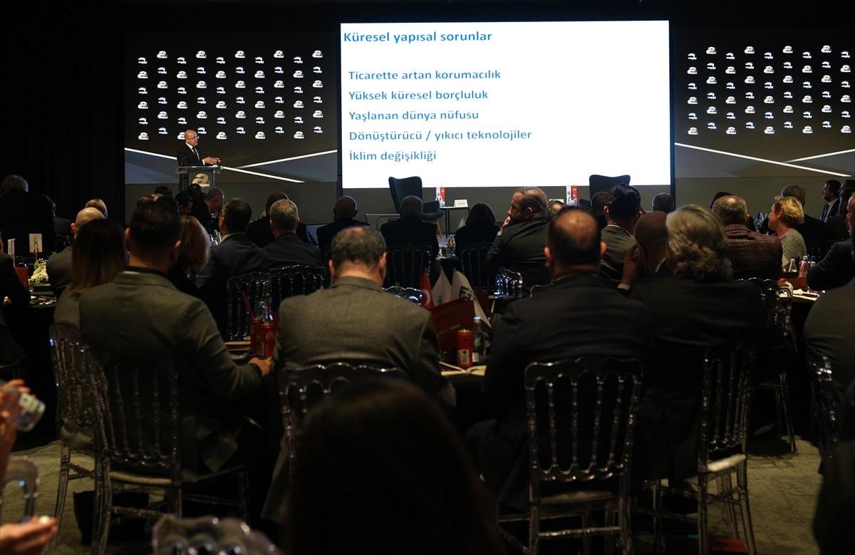 Şimşek, "Uzun vadeli küresel sıkıntılar var ama Türkiye'nin o sıkıntılar bağlamında büyük avantajları var. Evet bir program uyguluyoruz bu programın kısa vadeli yan etkileri var fakat bunlar geçicidir, zorlu dönemin önemli bir kısmı geride kaldı ve inanıyoruz ki önümüzdeki dönemde gerekiyorsa gerek küresel gerek Türkiye’nin şartları iş yapmaya, üretmeye, ihracat yapmaya çok daha elverişli olacak. Çok daha güçlü şekilde desteklemeye devam edeceğiz, arz yönlü politikaları, yapısal dönüşümü önceliklendireceğiz." ifadelerini kullandı.