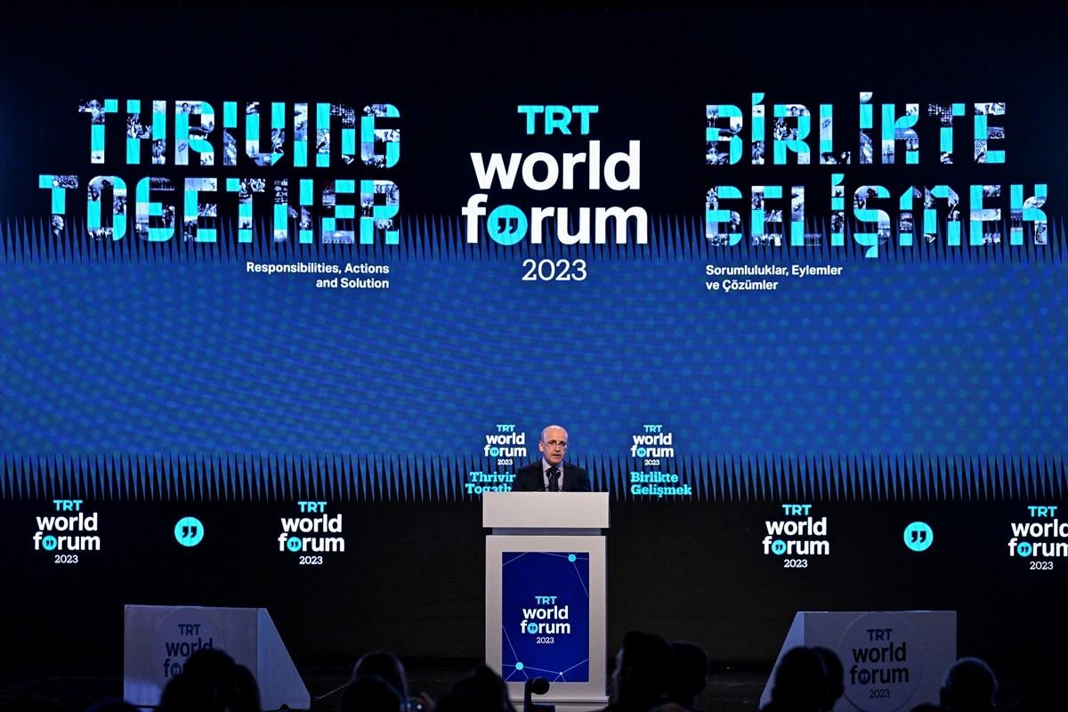 Hazine ve Maliye Bakanı Mehmet Şimşek, "Birlikte Gelişmek: Sorumluluklar, Eylemler ve Çözümler" temasıyla düzenlenen İstanbul'daki TRT World Forum'da konuştu.