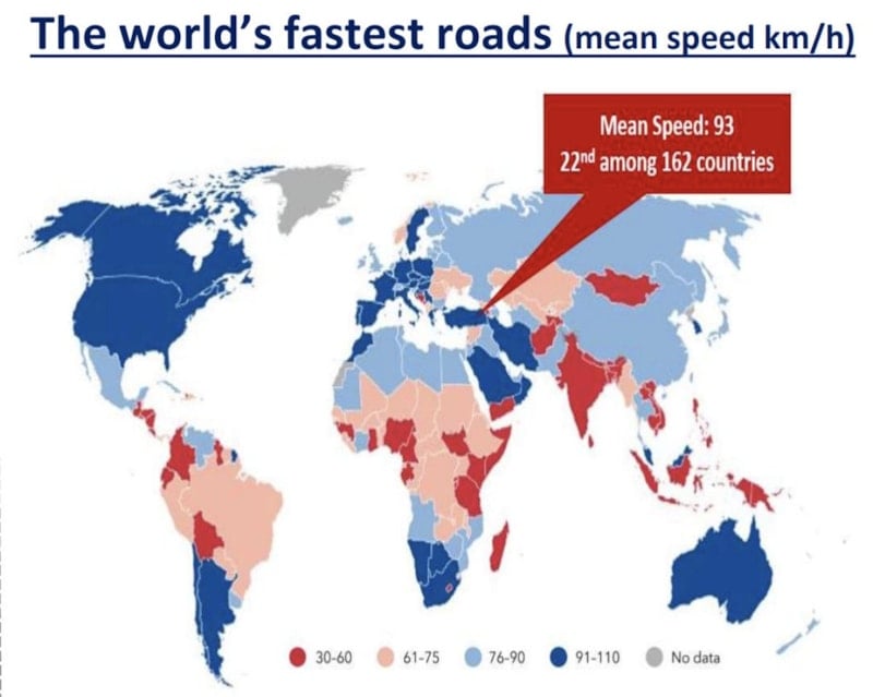 Dünyanın en hızlı yolları (ortalama hız km/sa):