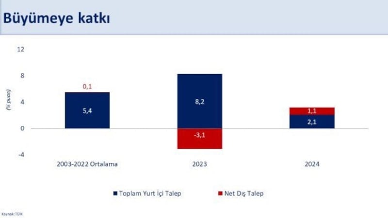 2024 yılında iç talebin 2,1 puan, net dış talebin 1,1 puan katkısıyla yüzde 3,2 büyüdük.