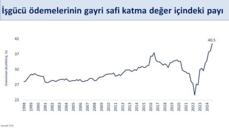 İş gücü ödemelerinin gayri safi katma değer içindeki payı son çeyrekte tarihi yüksek seviyesi olan yüzde 40,5’e ulaştı.