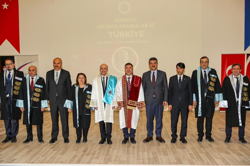 Küresel ticaretle ilgili düzenlenen bir konferansa katılmak için Batman'a giden Hazine ve Maliye Bakanı Mehmet Şimşek'e Batman Üniversitesi tarafından fahri doktora unvanı verildi.