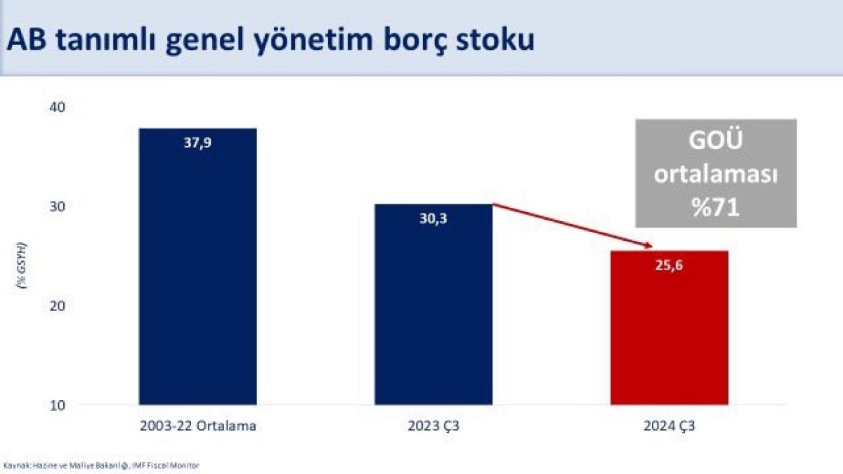 -Toplam borçluluk düşük seviyede. Brüt dış borç stokunun milli gelire oranı geriliyor. AB tanımlı borç stokunun milli gelire oranı serinin açıklanmaya başladığı tarihten bu yana en düşük seviyede. Borç stokunun kur, vade ve faiz riskini azaltıyoruz.
