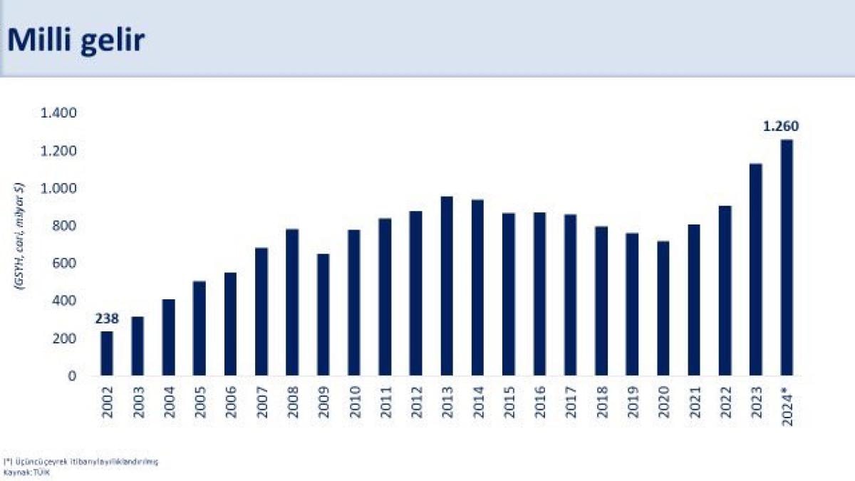 -Reel büyüme tahminlerimizin altında kalacak olsa da dolar cinsinden milli gelir 1,3 trilyon dolara ulaşacak.
