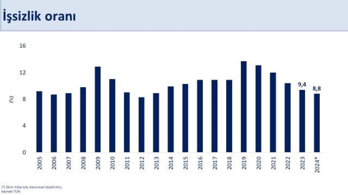 -İstihdam 843 bin kişi arttı. İşsizlik oranı tek haneli seyrini sürdürdü, öngörülerimizden daha olumlu gerçekleşecek.