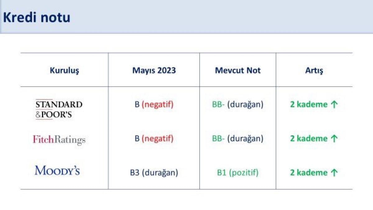 -Gri listeden çıkış sürecimizi tamamladık. 3 büyük kredi derecelendirme kuruluşundan 2 kademe not artırımı alan tek ülke olduk. Uluslararası kuruluşlardan en çok kaynak sağlayan ülkeler arasındayız. Kalkınma odaklı projeler için 8,6 milyar dolar uygun koşullu ve uzun vadeli dış finansman temin ettik.