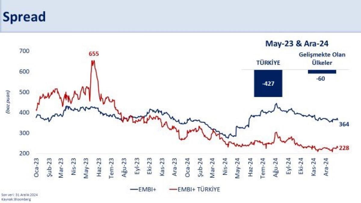 -Ülke risk primimiz düştü. Dış finansmana erişim arttı. ABD Hazinesi benzer vadeli tahvil getirisi üzerine ilave prim farkı (spread) geriledi. Dış borçlanma maliyetleri azaldı.