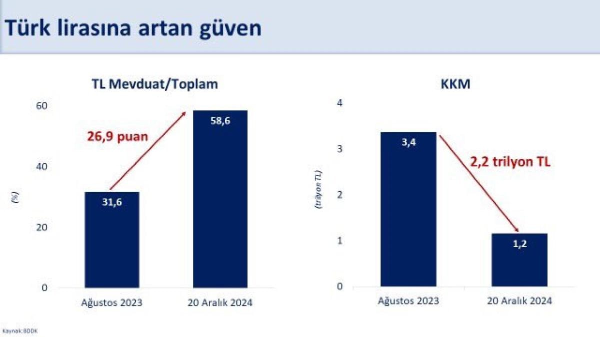 -Uluslararası rezerv pozisyonumuz güçlendi. Türk lirasına güven arttı. Kur Korumalı Mevduat önemli ölçüde azaldı.