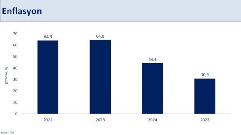 2025 yıl sonu enflasyonu bir önceki yıla göre 13,5 puan azalarak yüzde 30,9 gerçekleşti ve dezenflasyon genele yayıldı.