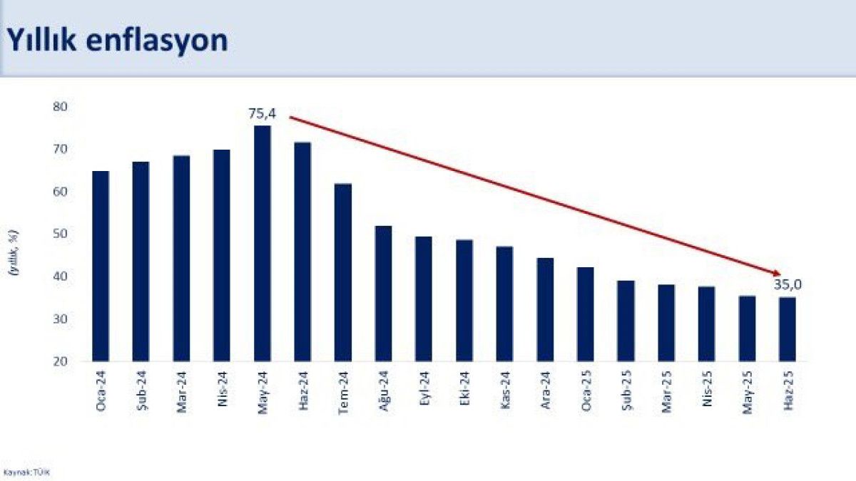 Haziranda aylık enflasyon, jeopolitik gerginlikler nedeniyle artan petrol fiyatlarına rağmen yüzde 1,37 gerçekleşti. Dezenflasyonun devam ettiği haziranda yıllık enflasyon yüzde 35’e geriledi.