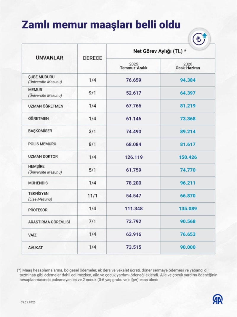 2026 Ocak-Temmuz en düşük memur maaşı 59 bin 896 lira oldu.