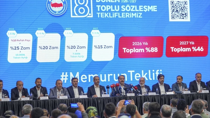 8. Dönem Toplu Sözleşme görüşmelerindeki talepleri kamuoyuyla paylaşan Memur-Sen Genel Başkanı Ali Yalçın, 2026'ın 1. altı ayında taban aylığa 10 bin lira zam yapılmasını, yüzde 10 refah payı ve yüzde 25 zam verilmesini istediklerini söyledi.