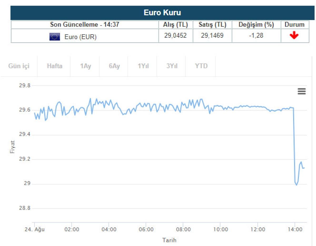 Euro, karar sonrasında ilk refleks olarak yüzde 1,5 düşerek 29,5698 liradan 29,0485 liraya geriledi. Günün kapanışında ise toplam yüzde 7 düşüşle 28,0424 liraya indi.