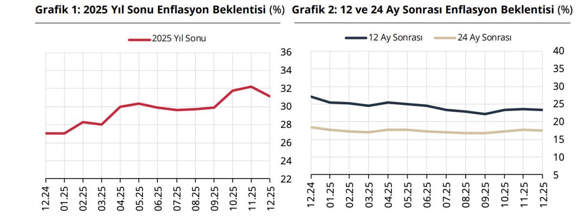 - Türkiye'de aralık ayı piyasa katılımcıları anketine göre yıl sonu enflasyon beklentisi yüzde 31,17'ye geriledi.