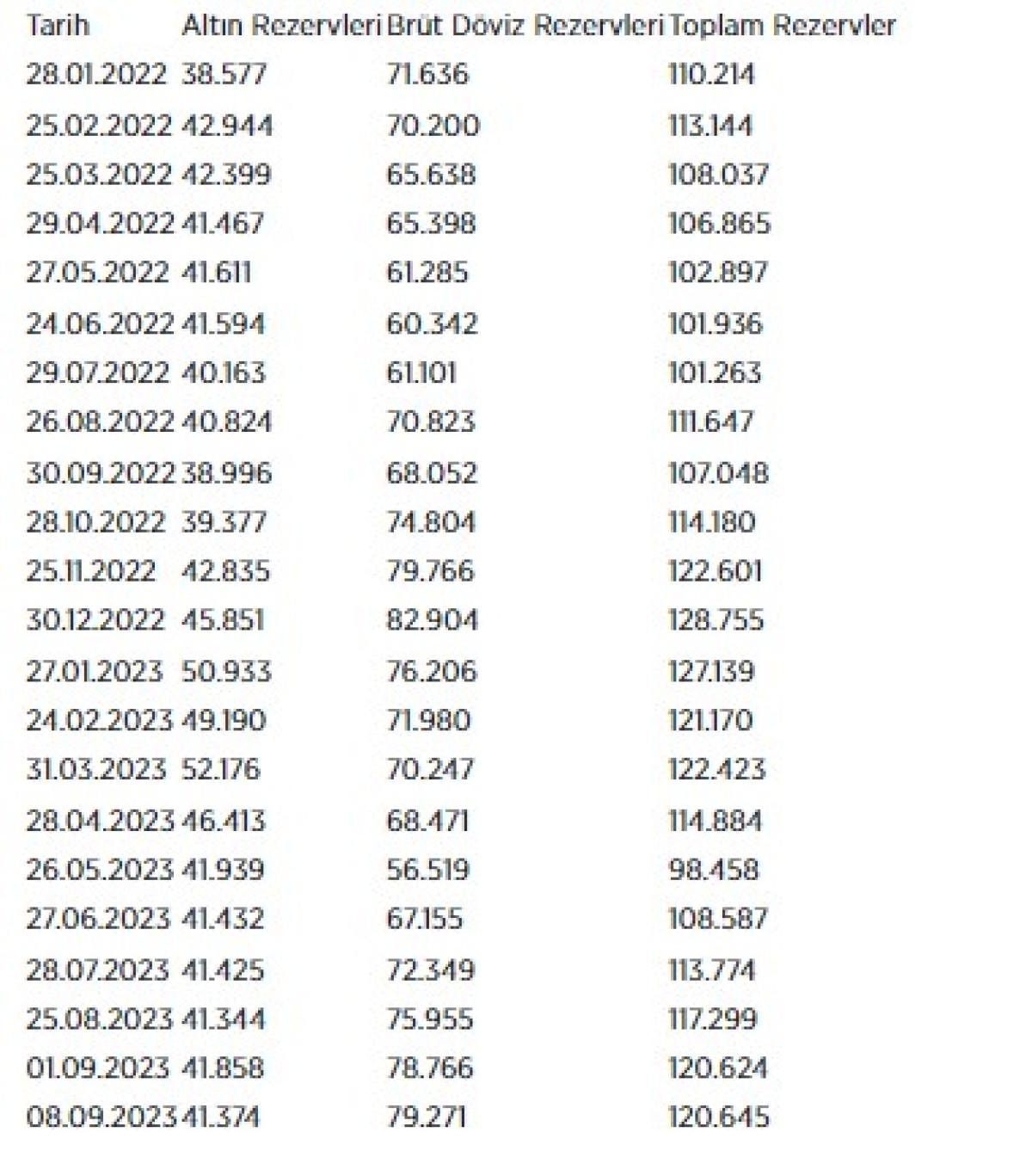 TCMB rezervleri tarihler itibarıyla şöyle (milyon dolar):