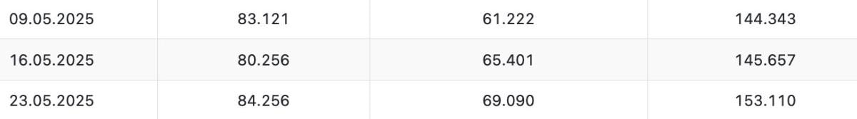 Buna göre, 23 Mayıs itibarıyla Merkez Bankası brüt döviz rezervleri 3 milyar 689 milyon dolar yükselişle 69 milyar 90 milyon dolara çıktı. Brüt döviz rezervleri, 16 Mayıs'ta 65 milyar 401 milyon dolar seviyesinde bulunuyordu.
