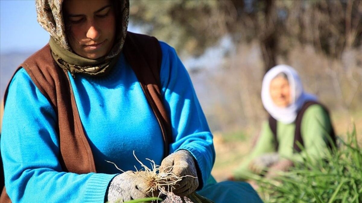 Günlerinin bir bölümünü yeşil soğan hasadı yaparak geçiren kadınlar, günlük ortalama 100-150 lira kazanıyor.