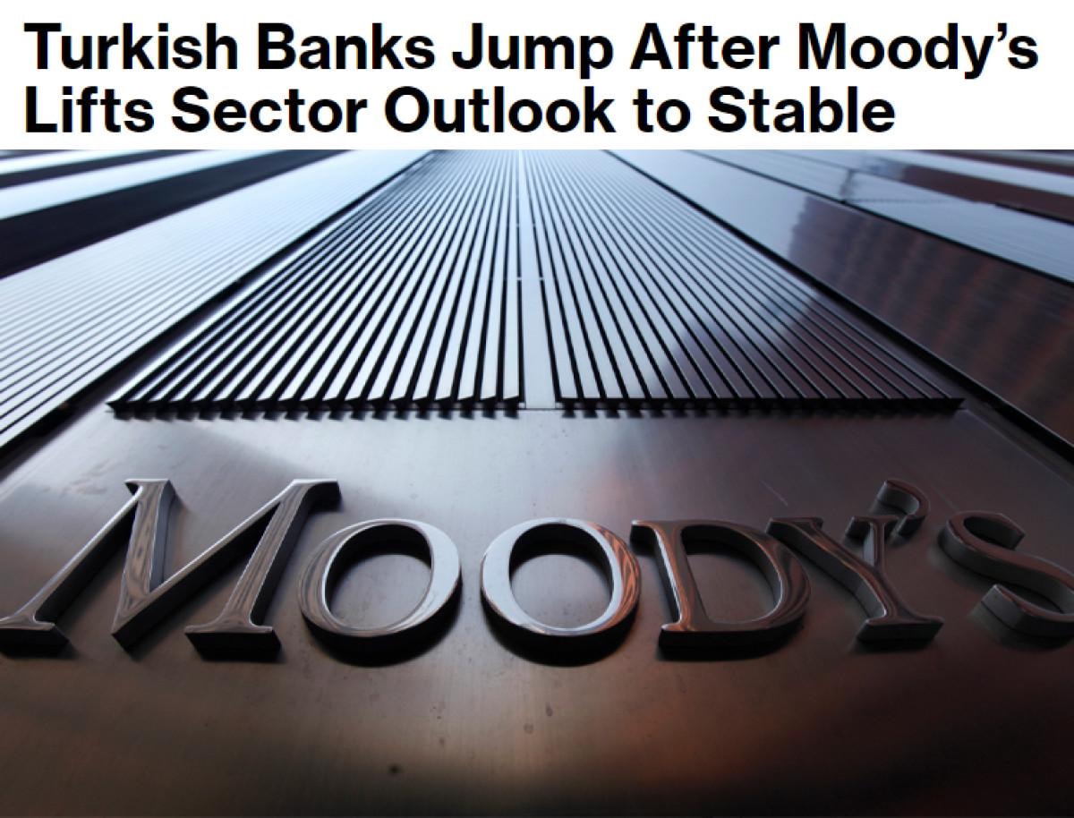 Moody's'in kararına işaret eden ABD merkezli Bloomberg, "Türk bankacılık hisse senedi endeksini rekor yüksekliğe çıkardı." diye yazdı.