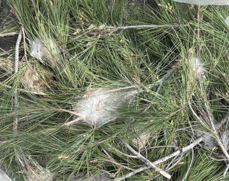 Çam ağaçlarının sık olduğu Muğla'nın Marmaris ilçesinde orman varlığını tehdit eden çam kese böceğiyle mücadele devam ediyor. Ağaçlardan toplanan beyaz keseler tel kafeslere yerleştirilerek doğal yollarla mücadele sürüyor.