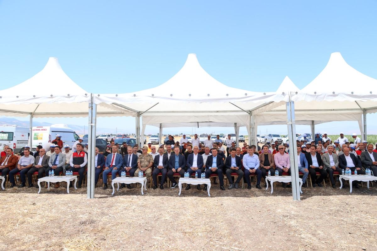 Tören, Yıldız Alparslan Tarım İşletmesi'nde "Bereket hasat zamanı ve çiftçi gülerse memleket güler" mesajıyla gerçekleştirildi.