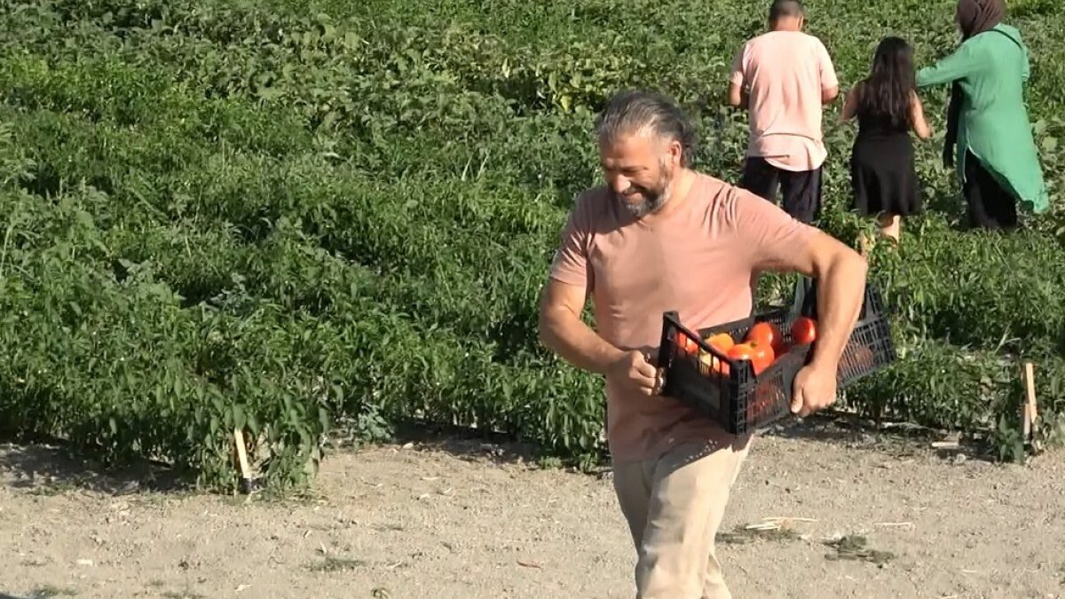 DOMATES, BİBER, PATLICANI ELLERİ İLE TOPLAYANLAR PARASINI ÖDEYİP TARLADAN ÇIKIYOR