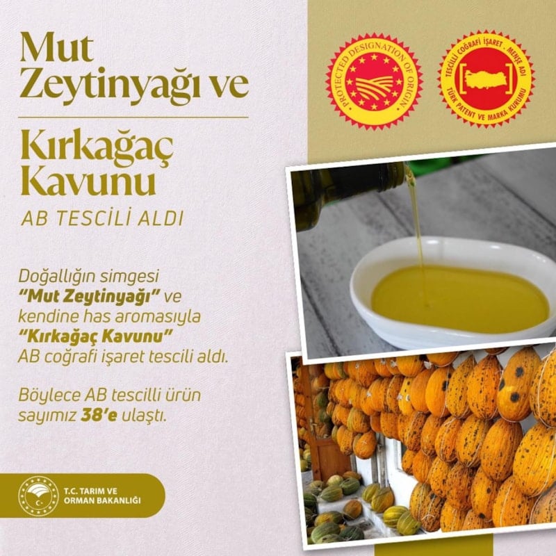 Mut Zeytinyağı ve Kırkağaç Kavunu 37. ve 38. AB coğrafi işaret tescili alan ürünler olarak dünyaya açılıyor. Türkiye'nin yerel değerleri, AB tesciliyle global arenada değer kazanıyor.