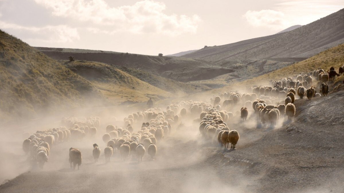 Yolculuk sırasında koyunların ortaya çıkardığı toz bulutu ise seyrine doyumsuz bir manzara sunuyor.