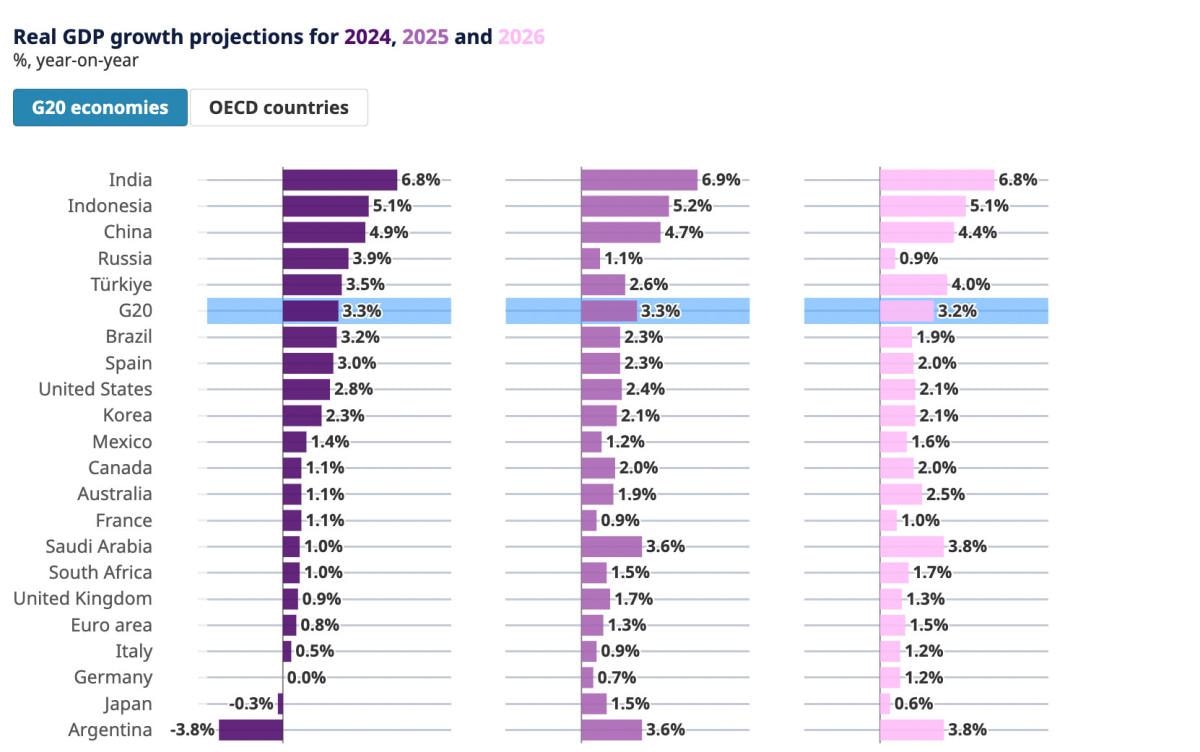 OECD, mayısta yayımladığı Ekonomik Görünüm Raporu'nda, küresel ekonomik büyümeyi bu yıl ve 2025 için sırasıyla yüzde 3,1 ve yüzde 3,2 olarak öngörmüştü.