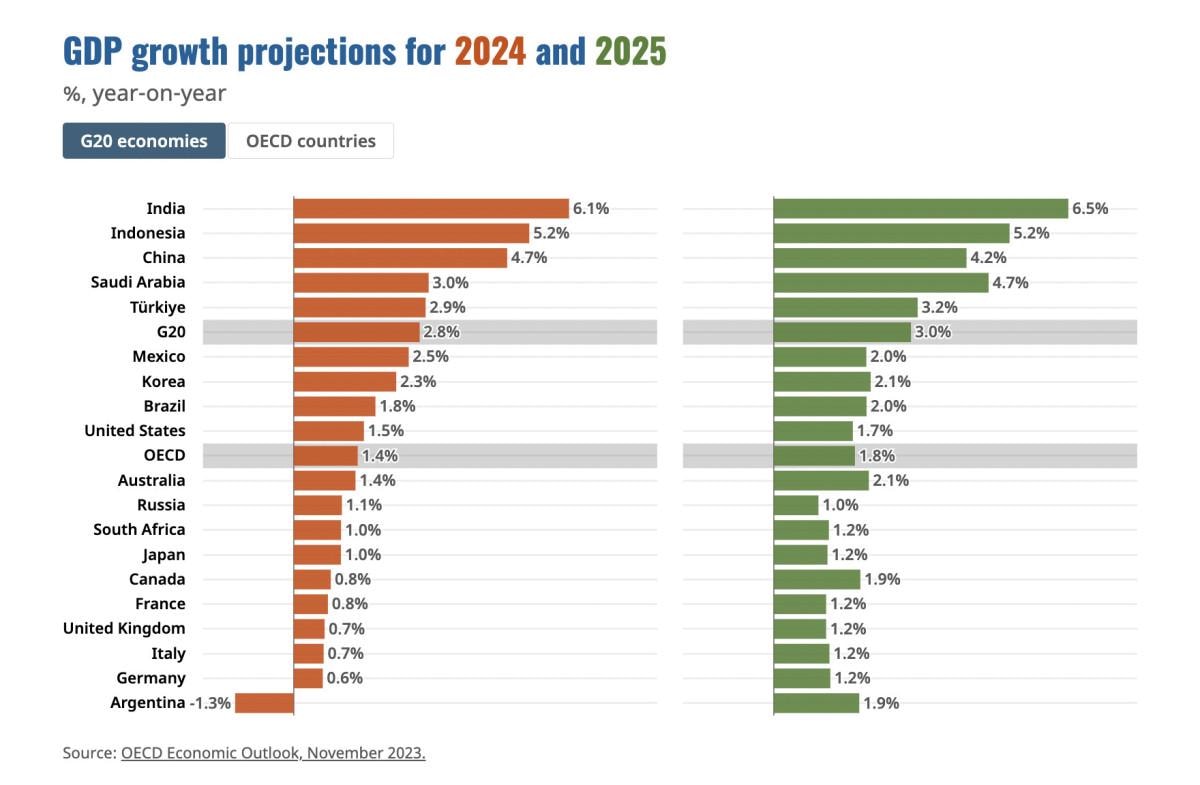 OECD Türkiye ekonomisinin 2025'te yüzde 3,2 büyümesini beklerken, küresel ekonominin 2025'te yüzde 3 büyümesini öngörüyor.