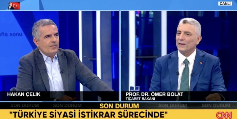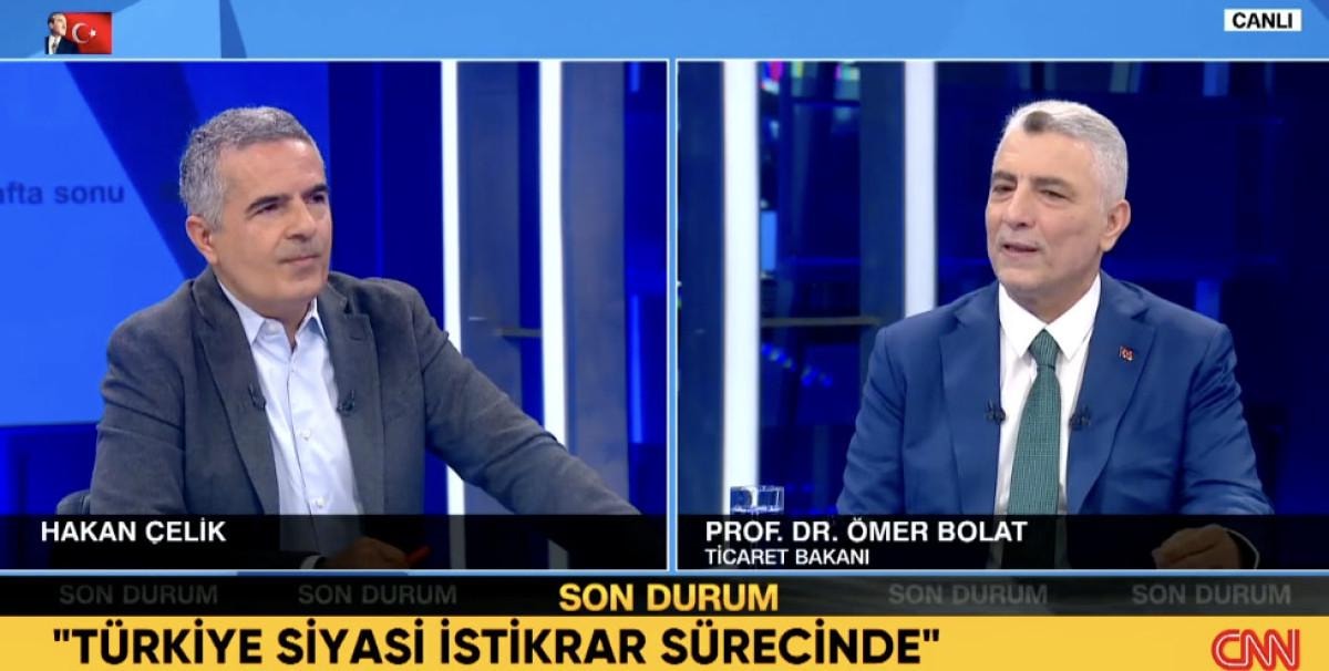 Ticaret Bakanı Ömer Bolat, CNN Türk'te gazeteci Hakan Çelik’in sorularını yanıtlarken Türkiye'nin 21 yıldır siyasi istikrar sürecinde çok önemli kazanımlar elde ettiğini açıkladı.
