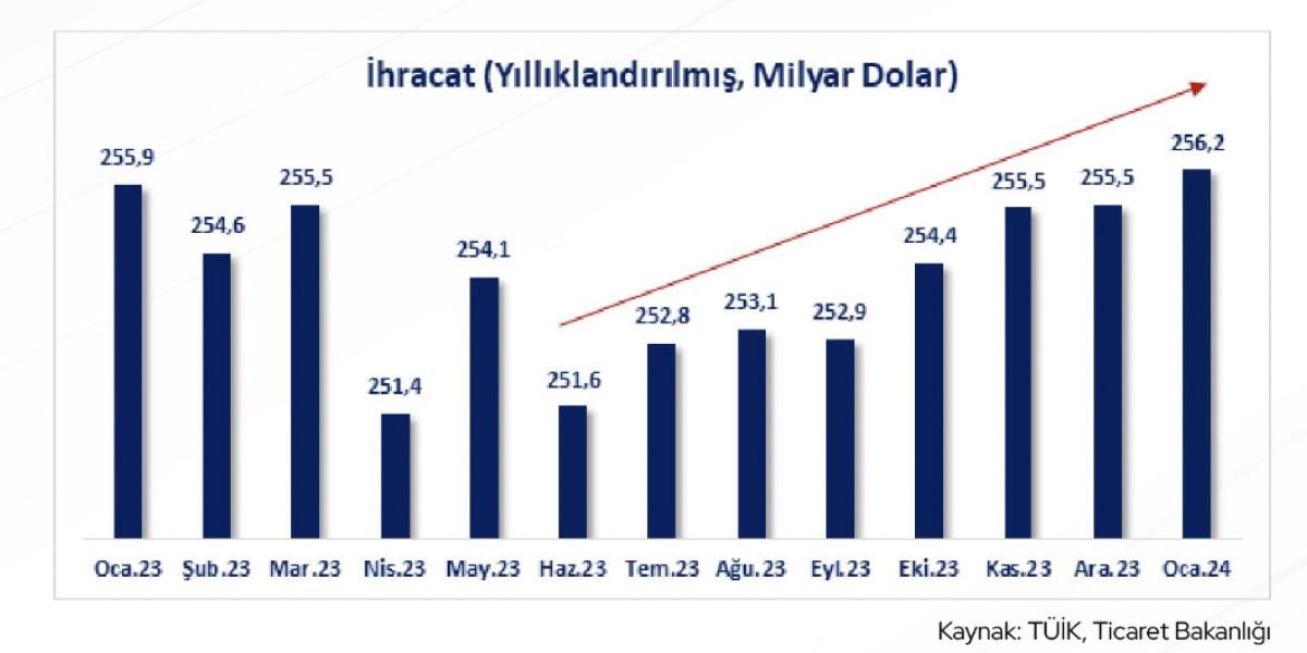 Geçen yılın ikinci yarısında başlayan yıllıklandırılmış ihracattaki artış eğilimi ile yıllıklandırılmış ithalattaki azalış eğiliminin bu senenin ocak ayında da sürdüğünü vurgulayan Bolat, şu ifadeleri kullandı: