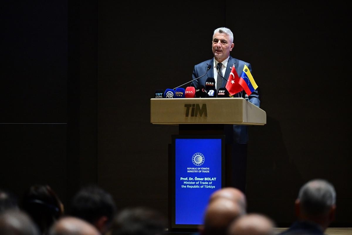 Ticaret Bakanı Prof. Dr. Ömer Bolat, Türkiye İhracatçılar Meclisi (TİM) binasında gerçekleştirilen "Türkiye-Venezuela Ticaret Fuarı" açılışındaki konuşmasına, Venezuela heyetini Türkiye'de görmekten duydukları memnuniyeti dile getirerek başladı.