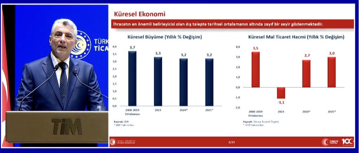 Ticaret Bakanı Ömer Bolat, İstanbul'da TİM binasında ihracatta 2025 hedeflerini ve bu hedeflere ulaşmak için İhracatta 2025 Yılı Eylem Planı'nı aktardı.
