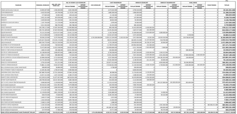 Genel bütçe kapsamındaki kamu idareleri (1 sayılı cetvel) 2026 yılı bütçesi ödenek teklif tavanları şöyle belirlendi: