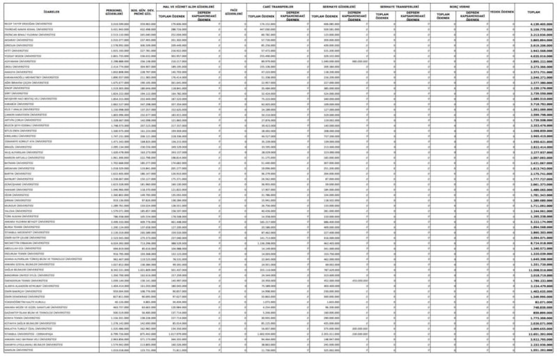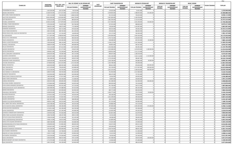 2026-2028 yılları arasında üç yılın programı olan OVP'de kurumların alacağı ödenek ve bütçelerin cetvelleri de yer aldı. 2026'da kamu kurumları arasında en yüksek ödenek Hazine ve Maliye Bakanlığı'na verilirken, üniversiteler arasında en fazla bütçe Ankara Üniversitesi'nin oldu.