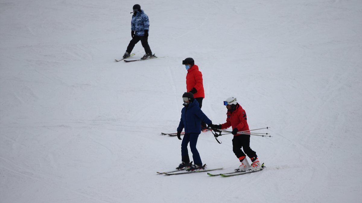 Yarıyıl tatilini fırsat bilip gelen yerli ve yabancı turistler, bölgede kayak yapmanın tadını çıkarıyor.