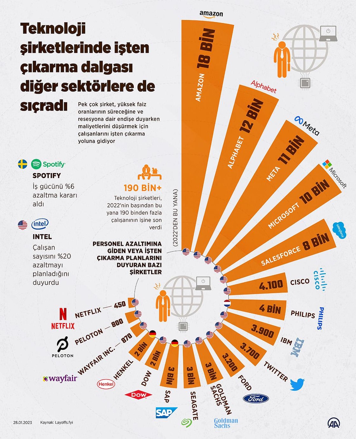 80 bin çalışanı olan şirket, maliyetlerin azaltılması için 2023 yılında dünya genelinde 6 bin kişiyi işten çıkaracağını açıkladı.