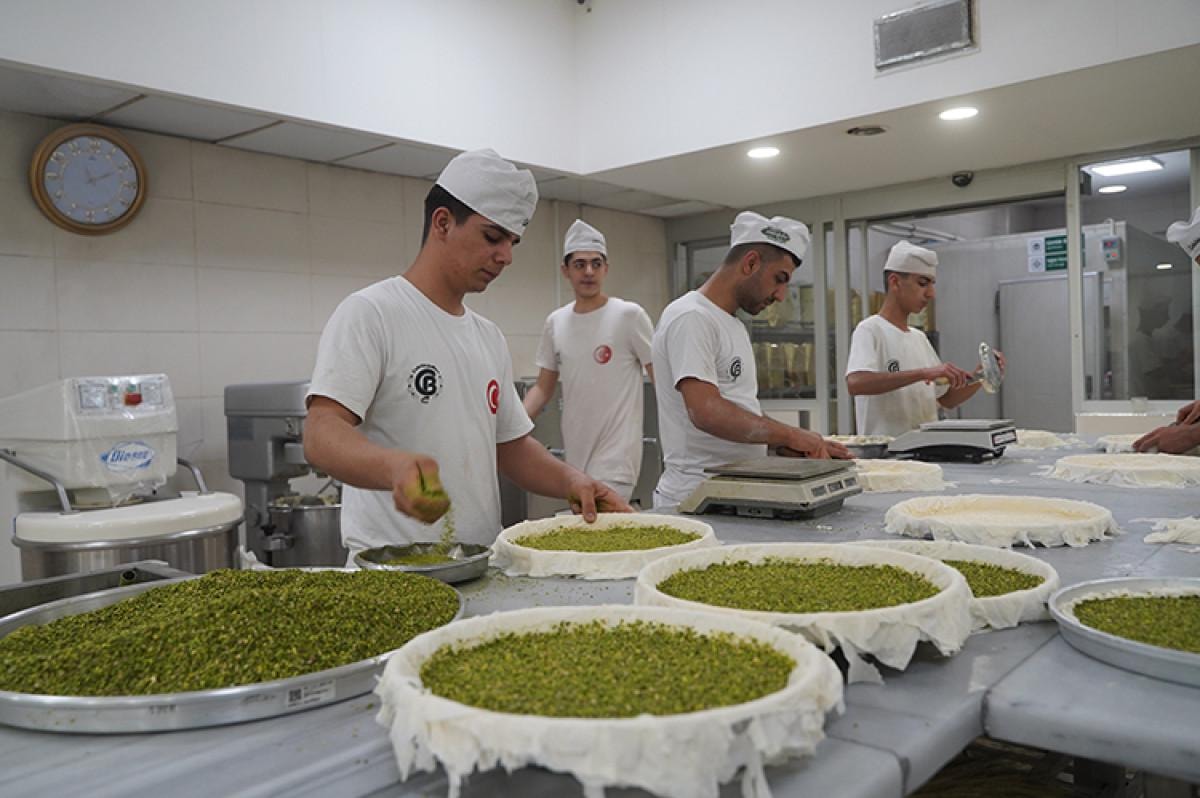 Yaklaşan bayram nedeniyle taleplere yetişmekte zorlanan ustalar, 24 saate yakın üretim yapıp talepleri karşılamaya çalışıyor. Çevrim içi satışlarla Türkiye ve dünyanın hemen her bölgesine ürün gönderen Gaziantepli ustalar, bayram nedeniyle üretimlerin günlük 80 tona ulaştığını belirtiyor.