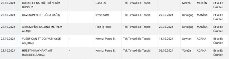 Dana eti, kırmızı parça eti, çiğ dana eti ve İzmir köfteye at ve eşek eti karıştırdılar. Zeytinyağı yerine tohum yağları, piliç sucuğa kanatlı etin her parçası, et sucuğa dil eti, haşhaş ezmesine yer fıstığı, kasap köfteye kanatlı eti kattılar. Tarım ve Orman Bakanlığı'nın denetimine takılıp, listeye alındılar.
