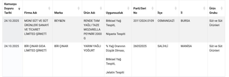 Tarım ve Orman Bakanlığı ekiplerinin yaptığı denetimlerinin sonuçları "sağlıksız ürün listeleri"nde yayımlanmaya devam ediyor. Bu kez süt ve süt ürünlerinde açıklanan hileler şaşırttı.
