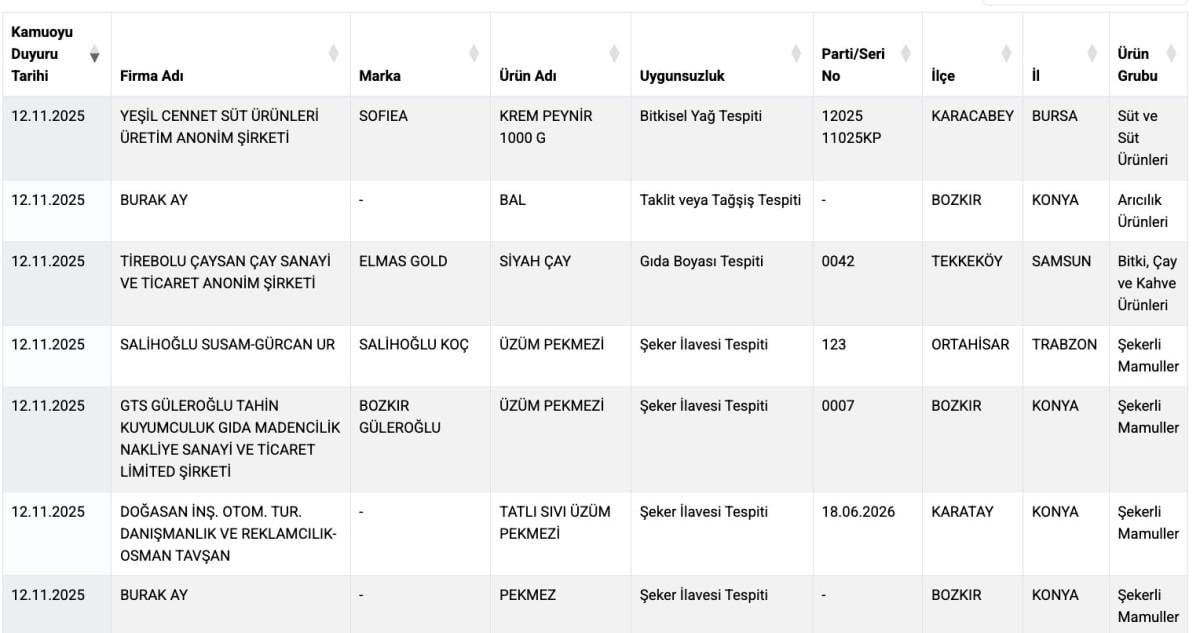 - Dünden bugüne 9 ürün daha taklit ve tağşiş yapılan gıdalara dahil oldu.