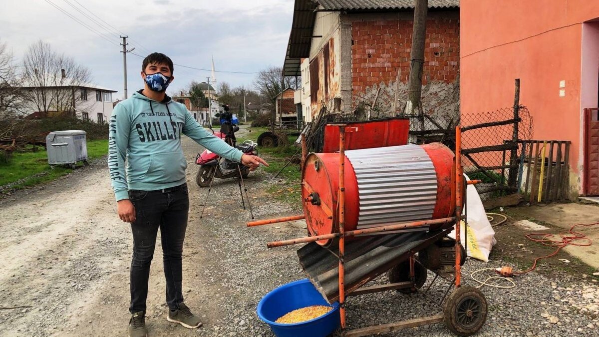 Sakarya'nın Kaynarca ilçesinde, çiftçi Kadir Aydın 4-5 bin lira arasında satılan mısır taneleme makinesini alamayınca hurda malzemeden kendi makinesini yaptı.
