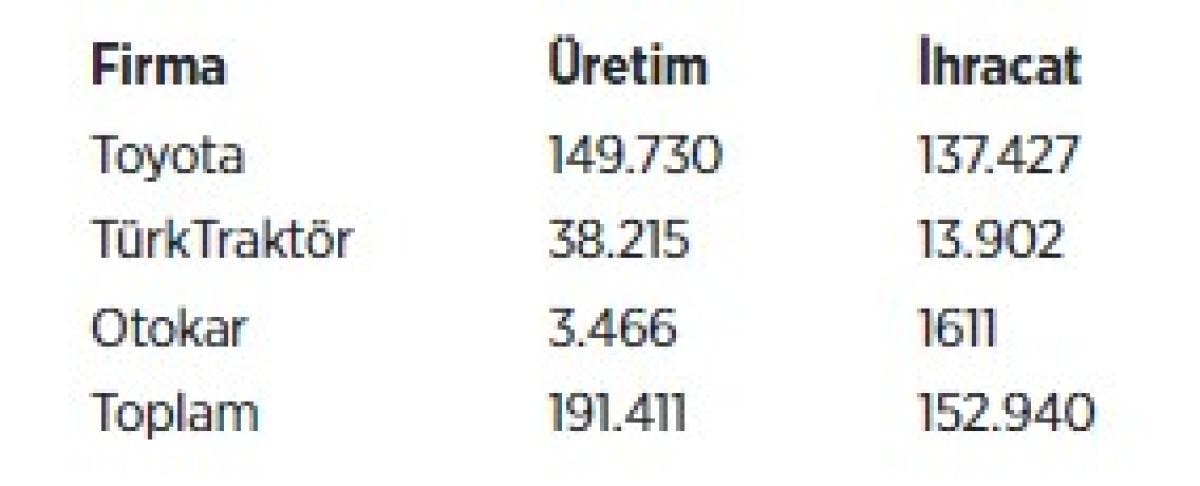 Üretim ve ihracatta Toyota liderliğini korurken, TürkTraktör ikinci, Otokar üçüncü sırada yer aldı.