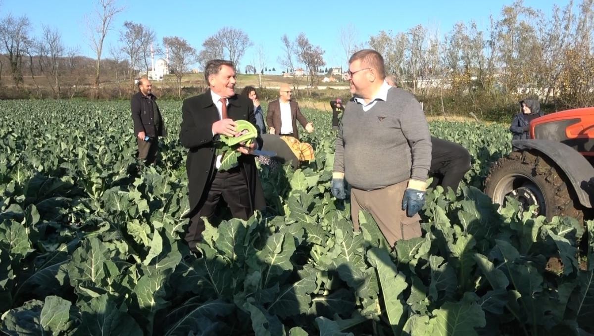 Bu sene İlçe Tarım ve Orman İlçe Müdürümüzün tavsiyesi ve desteğiyle 20 dönümlük bir alanda renkli karnabahar üretimini denedik. Turuncu ve mor karnabaharlarımız oldu. Bu çiğ olarak da yenilebiliyor. Aynı brokoli gibi. Salatası ve yemeği de oluyor. Renkleri tamamen doğal, genetiğiyle oynanmış değil. Fideler Tarım Bakanlığımızdan sağlandı. Onların tavsiyeleri, yönlendirmeleri, bilgilendirmeleri doğrultusunda dikim yapıldı. Şu anda renkli karnabahar hasadına başladık. Bu sene karnabahar fiyatları iyi. Çiftçinin yüzü bu noktada gülüyor.