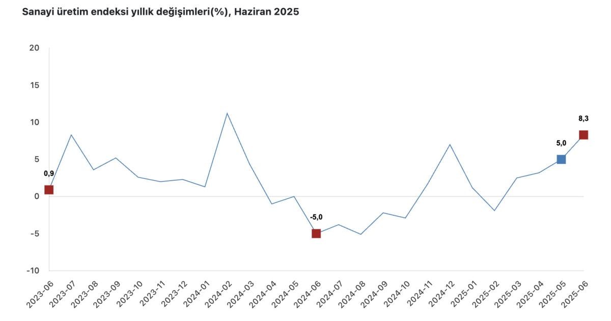 Buna göre, söz konusu ayda takvim etkisinden arındırılmış sanayi üretimi, geçen yılın aynı ayına kıyasla yüzde 8,3 yükseldi.