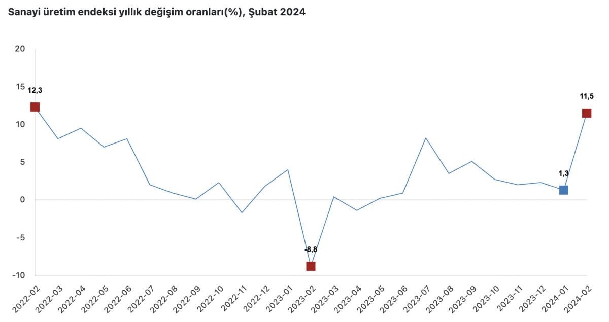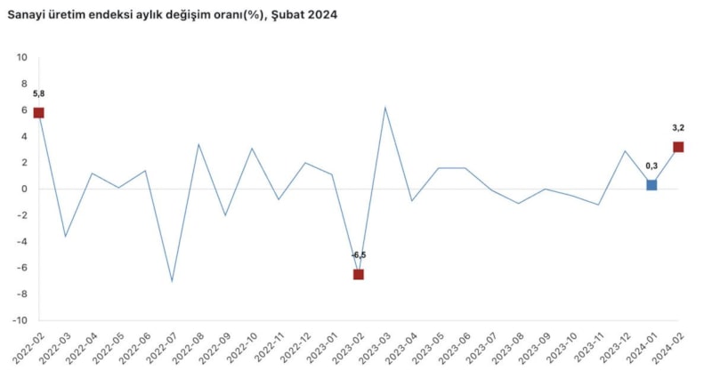 Türkiye İstatistik Kurumu (TÜİK), Şubat 2024 Sanayi Üretim Endeksi'ni açıkladı.