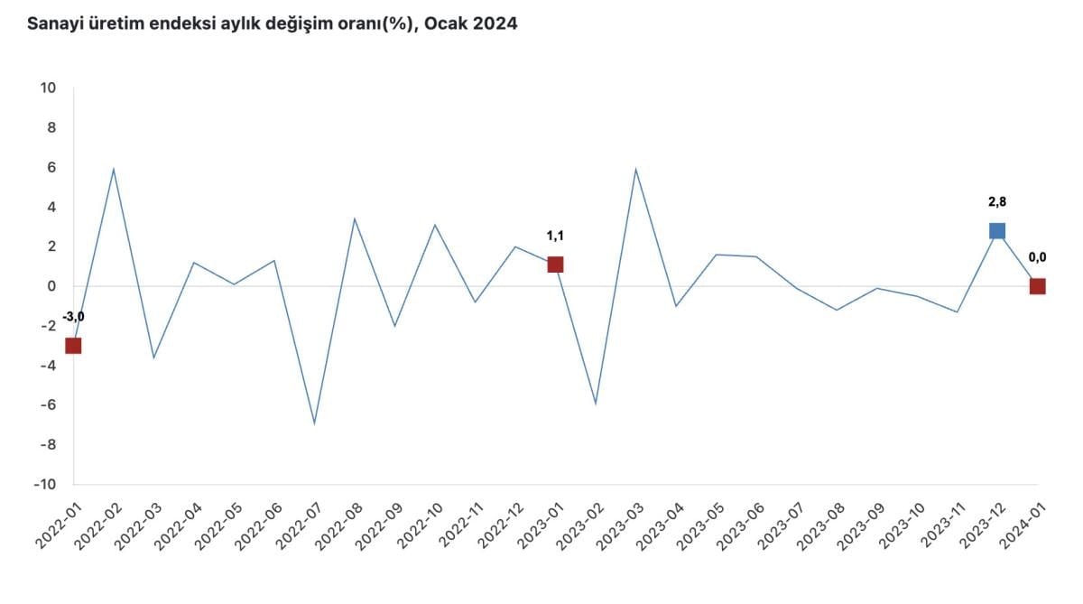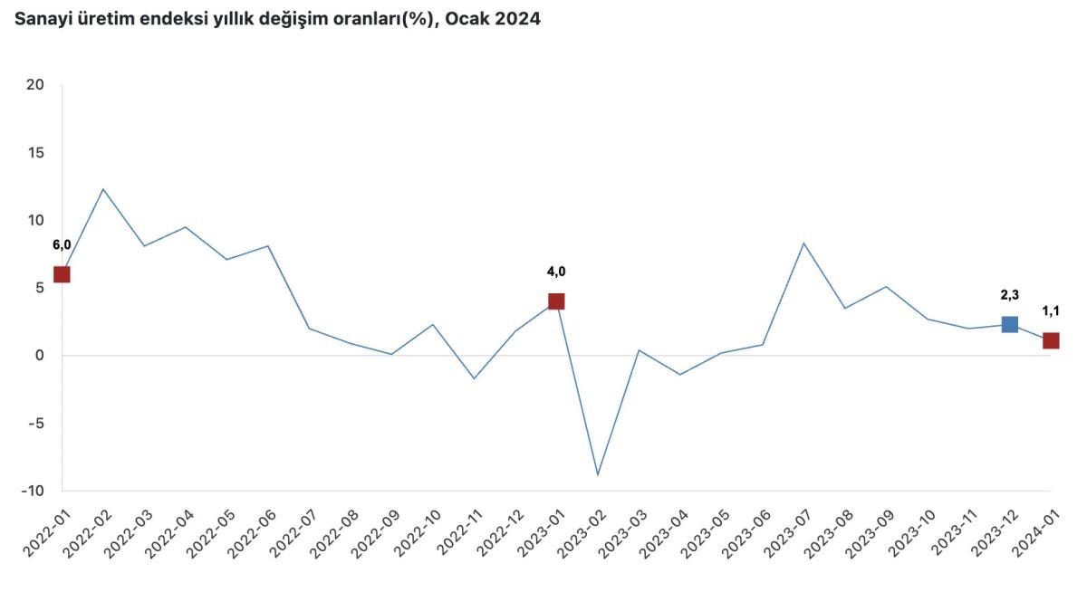 Türkiye İstatistik Kurumu (TÜİK), ocak ayı sanayi üretimi verisi yayınlandı.