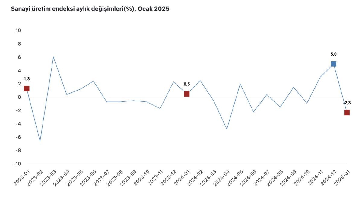 SANAYİ ÜRETİMİ AYLIK YÜZDE 2,3 AZALDI