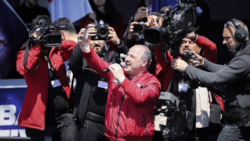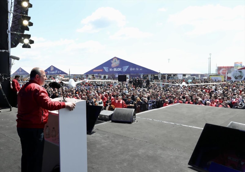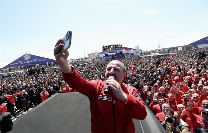 Bir cumhurbaşkanı adayı Atatürk Havalimanı'nın ABD'li şirketlere peşkeş çekeceğini ilan etti. Burayı ABD'li şirketlerin uzay ve havacılık merkezi yapacaklarmış. Burada dünyanın en büyük havacılık festivali yapılıyor, İngiliz, Alman, Fransız değil Türk gençleri yarışıyor. Bu beyefendi sizi görmüyor ve duymuyor. Sizi görmeyenlere biz buradan selam yollayalım. Biz buradan Türkiye'nin en büyük selfilerinden birini çekip yayınlayalım mı? Biz Allah'ın izniyle yerli ve milli kabiliyetlerimizin başka ülkelere peşkeş çekilmesine asla müsaade etmeyeceğiz. Baykar'a dokunacağız diyenlere karşı Selçuk Bayraktar'ın yanında durmaya var mısınız? Onun yanında sürekli duracağınıza söz veriyor musunuz?